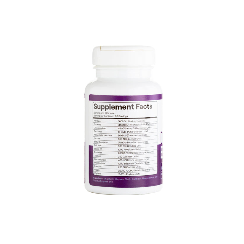 All-in-one digestive formula – Single capsule covers enzymes for carbs, fats, proteins, lactose, and fibers
