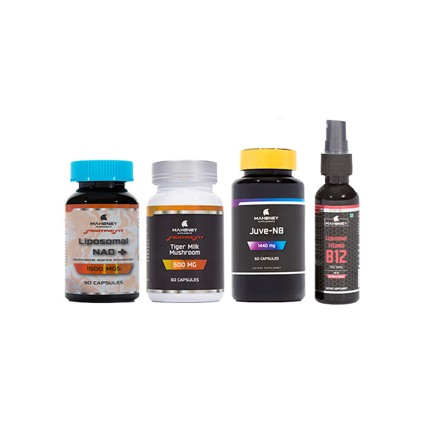 • Juve‑N8 combines NMN, Resveratrol, and Fisetin to support healthy NAD⁺ levels, mitochondrial resilience, and cognitive clarity. • Liposomal NAD+ delivers this vital coenzyme directly, helping your cells generate clean energy more efficiently. • Liposomal B12 provides highly absorbable methylcobalamin to reduce tiredness and support mental performance. • Tiger Milk Mushroom supports respiratory and immune function—vital pillars of sustainable energy and long-term vitality.