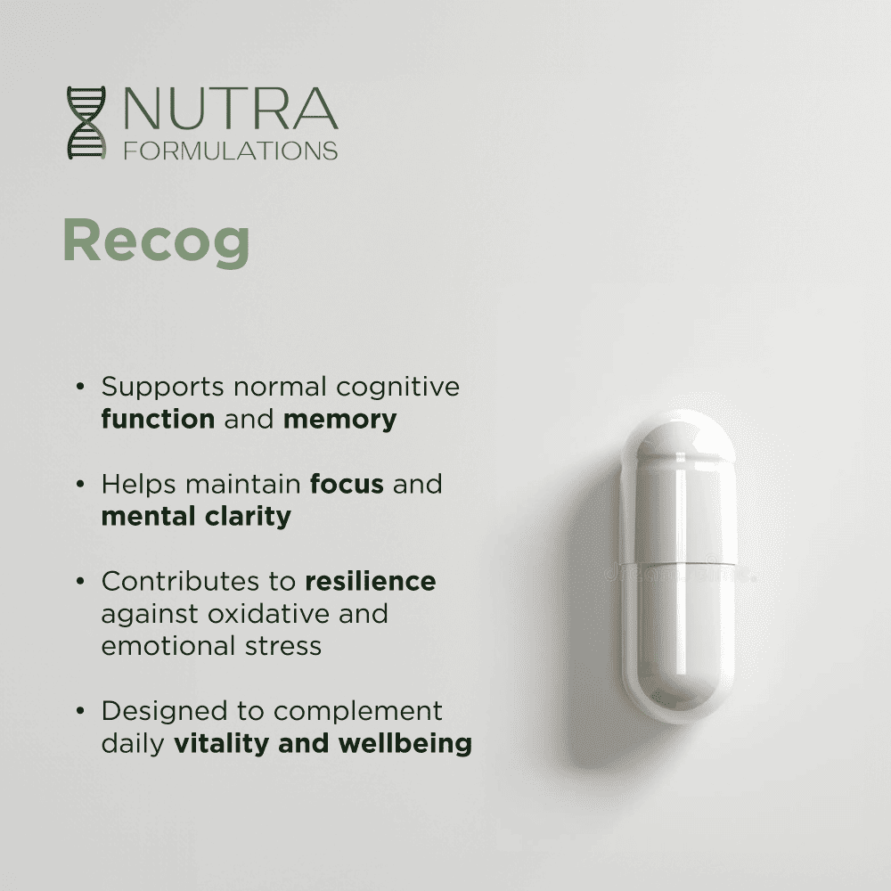 Recog with Lion’s Mane is designed to support cognitive clarity and resilience, helping nourish the brain systems that are asked to do more, for longer, every day.